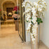 Introducing the ultimate luxury statement piece: a stunning high-gloss stainless steel conical planter paired with exquisite cascading white phalaenopsis orchids. Each piece is meticulously crafted and polished for a luxurious mirrored finish.